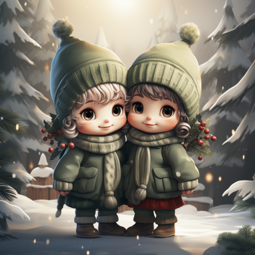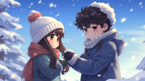 Cute couple making a snowman in snowy winter, character illustration by kyoto animation studio --ar 16:9