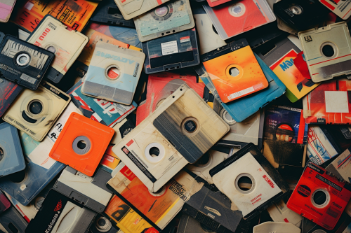 photography of a pile of compact discs cases, love letters mixtapes, handmade fonts covers, 90's style --v 5.2 --ar 3:2