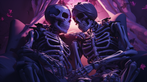 2 fortnite skull trooper men hugging in bed in fortnite, loving, 3d render, fortnite art style, --ar 16:9