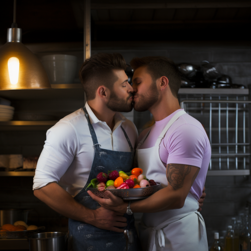 blending the painting styles of frank frazetta and j. c. leyendecker, two men walking in the forest, holding hands, romantically, strong, viral, muscular, cute, very handsome --v 6.0 --ar 2:3