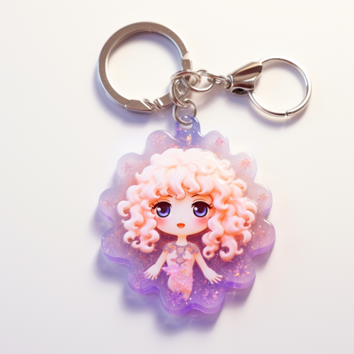 Logo to a resin keychain store called "joyka" colors, pink/ purple, white