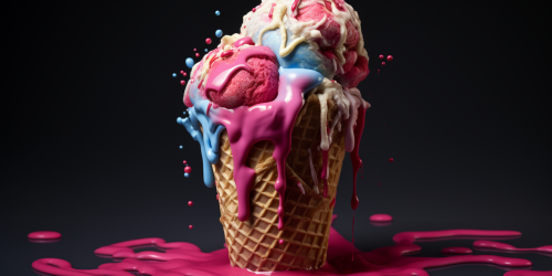 photo of an ANATOMICAL HEART melting on an ice cream cone, hyper realism, vivid colors, UHD --ar 2:1
