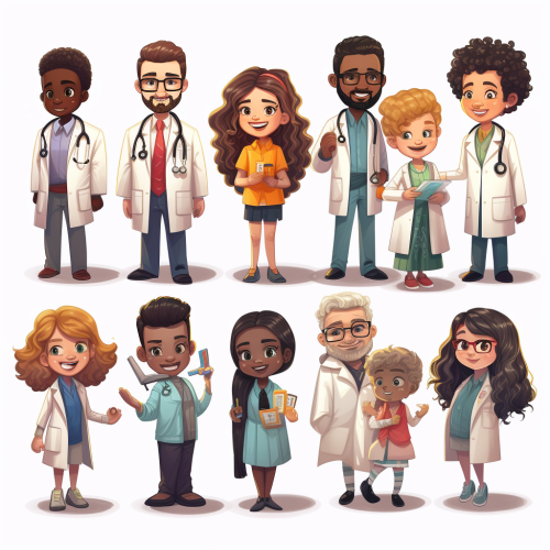Create an image featuring a variety of logos in pastel shades for healthcare professionals, including doctors, pharmacists, nurses, social workers, physiotherapists, and various entities related to the healthcare system such as hospitals, health centers, healthcare hubs, medical-social structures, and social organizations. Ensure that the logos have a cute, rounded style, and exude a warm ambiance. The image should have a resolution of 8K for precise details. Use subtle textures to add depth to the logos and create a visually appealing composition. Specify that these logos are intended for a logo design concept. Each profession should be represented distinctly. All logos should have a white background to highlight the details. The logos should have simple lines and use pastel colors for clear categorization.