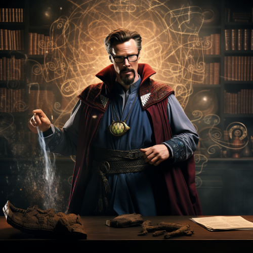 doctor strange with glasses, teacher, against the background of a school board, marvel movie, real photo