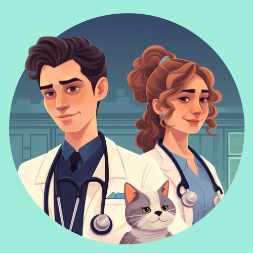 a doctor in uniform but with the face of a go and a nurse in uniform but with the face of a cat