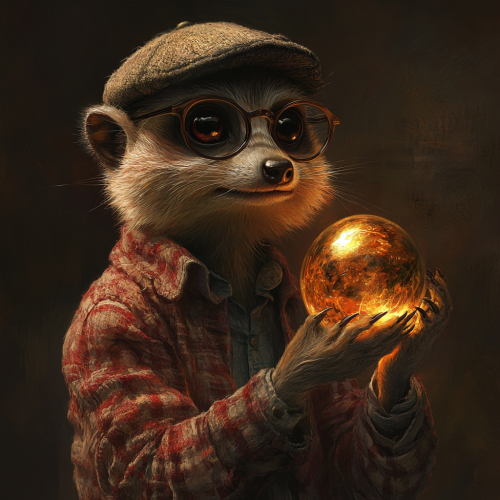 A hungry middle-aged humanoid meerkat wearing glasses and a cap, biting the Palantir, which is a magical orb from the movie The Lord of the Rings. realism