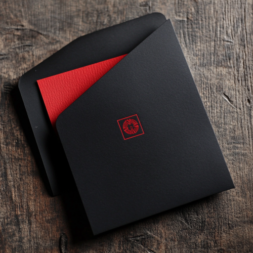 Create packaging or promotional box design for 'Seven Films.' The packaging should be black, with the logo in red at the center. The design should be clean, elegant, and minimalist, evoking the high-quality cinematic aesthetic that the brand represents