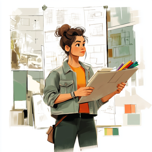 A powerful illustration of a Latina American film director on set, radiating confidence and focus. She has shoulder-length dark hair peeking out from under a well-worn black trucker hat, complemented by classic all-black Ray-Ban Wayfarers that add to her cool, commanding presence. Holding a megaphone in one hand, she directs her crew with poise and authority. Styled with the bold, clean lines and high-contrast shading of *Archer* mixed with anime-inspired details, she stands out as a strong, vibrant leader. Dressed practically with a utility belt holding essentials, she’s surrounded by film equipment and an energetic crew, capturing the intensity and collaborative spirit of a high-stakes film set.
