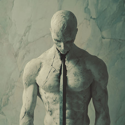 Create an eerie, vintage-style illustration of a character dressed in a gothic, latex-inspired maid outfit, featuring intricate cross-hatching to capture the glossy texture of the attire. Emphasize detailed shading to convey the light reflections and contours of the latex fabric. The character should have a solemn, expressionless face, evoking a detached and enigmatic aura, with minimalistic features reminiscent of early 20th-century fashion. Place the figure against a simple, blank background to enhance the sense of isolation and focus on the character. Include a subtle, symbolic motif, such as a black feather or a small, shadowy figure, to hint at hidden depth and narrative mystery.