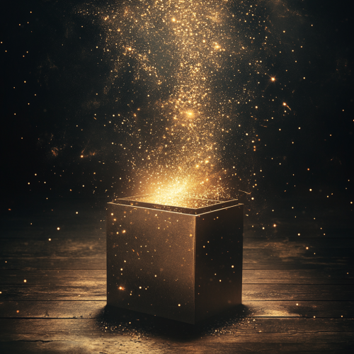 create a mysterious box of business strategy, tactics, tools and luck. Make the information flowing out of the top of the box with a light shining down on the box.