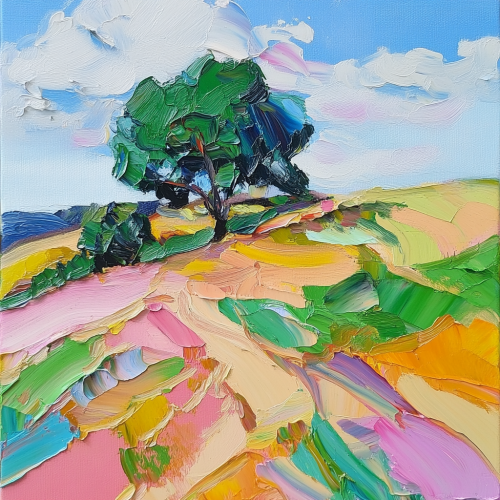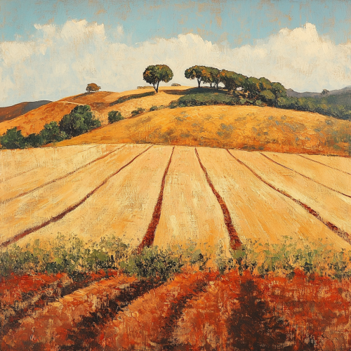 Impressionism style painting of land, embodies the qualities of soft, fertile soil that nurtures and nourishes life. It resonates with the Yin aspect of the Earth element.