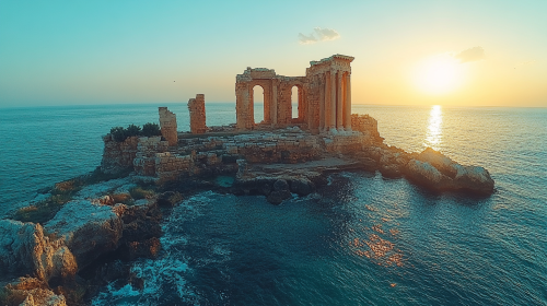 cinematic. The expansive landscapes and culture of Libya, with Roman ruins of Leptis Magna, Tripoli’s Red Castle, and vast Sahara Desert. The Acacus Mountains in the distance. warm earthy tones, historical and tranquil atmosphere. 8k. --s 500 --ar 16:9