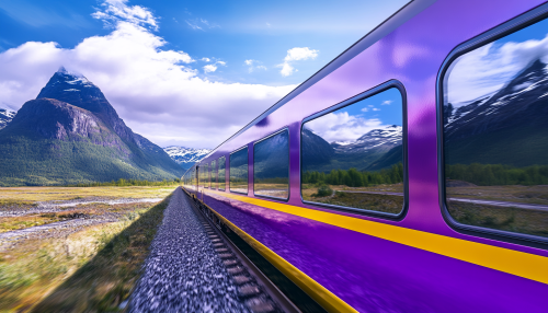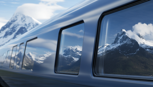 a close up of the windows of a speed train with the moutains of norway reflecting in them, photorealistic, uhd image, 8k, in the style of saturated colorism, --ar 7:4 --style raw --stylize 50 --v 6.1