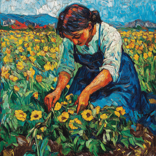 Van Gogh style daylight farming , Ji Earth embodies the qualities of soft, fertile soil that nurtures and nourishes life. It resonates with the Yin aspect of the Earth element.