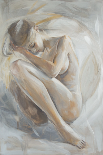 a painting of a female form on a neutral background, in the style of muted, curves, body casts/body prints, neutral colors, tanya shatseva, bold chromaticity, soft light, andre derain --ar 2:3 --v 6.1
