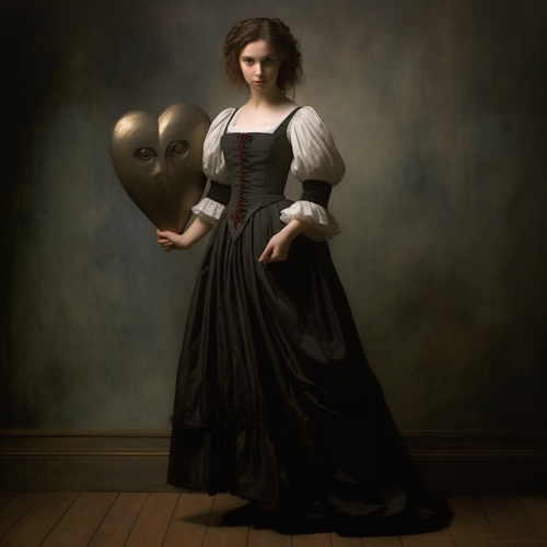 30 year old woman, full body view, holding organ heart, bouguereau style, antique oil style, angry