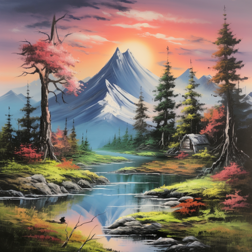 a lord of the rings inspired high elf mountain kingdom painted by Bob Ross to simple perfection