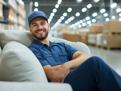Realistic image of a professional painting contractor working on the interior of a large commercial building. Showcase painters in uniforms applying a clean coat of paint to high walls and ceilings. The environment should feel like a spacious modern office or warehouse in Alberta, with a focus on quality, professionalism, and attention to detail. The lighting should be bright but natural, emphasizing a fresh, inviting atmosphere. Perfect for a small to medium-sized local contractor --ar 4:3 --c 33 --s 333