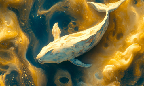whale, abstract painting with photorealstic pattern, square sections and basrelief, vertical leaking paint lines --c 30 --s 200 --v 6.1 --ar 5:3 --weird 1