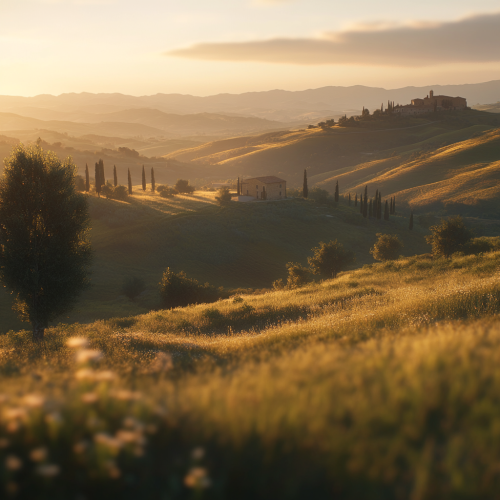 beautiful view of the Crete Senesi ultra detailed, soft lighting, beautifully color graded, Unreal Engine, Cinematic , Color Grading, Photoshoot, Shot on 85mm lens, f1.2, Depth of Field, DOF, 32k, Super-Resolution, Megapixel, Backlight, Natural Lighting, Soft Lighting, Conte-Jour, Beautiful Lighting, Global Illumination, hyper maximalist , elegant, dynamic pose, photorealistic, 8K, volumetric lighting , high contrast , HDR , --style raw --v 6.1