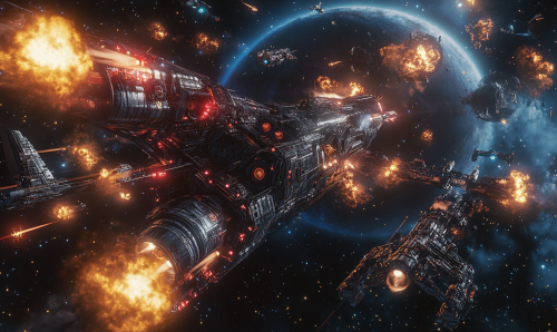 a photorealistic, cinematic space battle being fought between a squadron of small fighters making an attack run against a large battlestation. --ar 5:3 --v 6.1