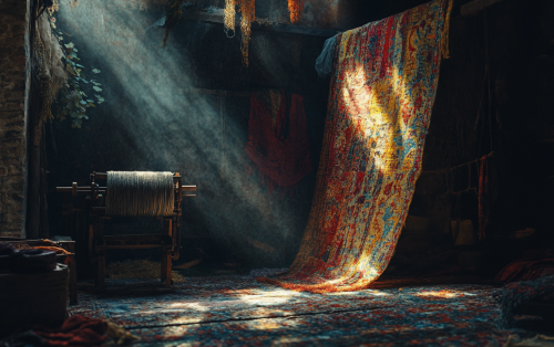 thanks to machines, 3.8 meters of fabric can suddenly be woven in a single working hour, instead of only 3 centimeters by hand. cinematic lighting, rich colors cinematic, 35mm, moody, high definition, --ar 8:5