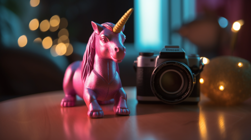 an unicorn pink with rainbow and stars with a Leica Camera, cinematic lighting, Unreal Engine 5, cinematographic, color grading, Editorial photography, photography, Session photo, Shot on 50mm lens, Depth of field, DOF, Tilt blur, Shutter speed 1/ 1000, F/ 22, White balance, 32k, Super - resolution, Megapixel, ProPhoto RGB, VR, tall, epic, artgem, alex ross, Halfrear Lighting, Backlight, Natural light, incandescent, Optical Fiber, Moody Lighting, Cinematic Lighting, Studio Lighting, Soft Lighting, Volumetric, Contre - jour, Dark lighting, Accent lighting, Global lighting, Global lighting space reflection, Ray tracing global illumination, red edge light, cool color grading 45% , Optics, Scattering, Glow, shadows, rough, shimmering, ray tracing reflections, lumen reflections, screen space reflections, diffraction grading, chroma tic Aberration, GB Displaicement, Scan lines, Ray tracing, Ray tracing Ambient Occlusion, Anti - Aliasing, FKAA, TXAA, RTX, SSAO, Shaders, OpenGL - Shaders, GLSL - Shaders, post - processing, post - pro production, Cel Shading, Tone Mapping, CGI, VFX, SFX, insanely detailed and intricate, hypermaximalist, elegant, hyperrealistic, superdetailed, dynamic pose, centered, photography, full figures --v 5.0 --ar 16:9