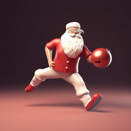 stylized christmas santa plays bowling, white beard, red jacker, dynamic pose, full body, cinematic light, christmas vibes, 3d plastic style --v 5.0 --s 50