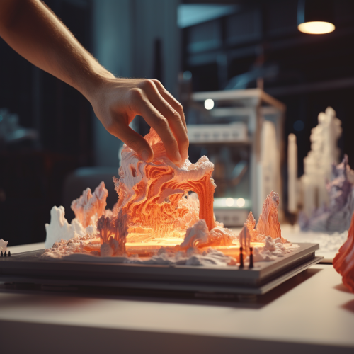 cinematic shot of resin 3d printing process, technology, depth of field — ar 1:1