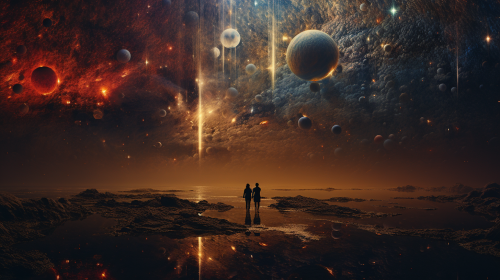 Existentialism, simulation, green and blue multiverse, fractals, animals floating in space, astral plane, ultra 8k, sharp photography, cinematic, volumetric lighting, intricate details --niji 5 --ar 16:9 --s 250