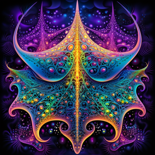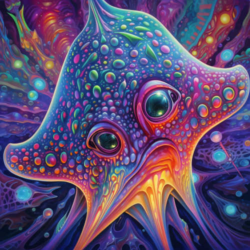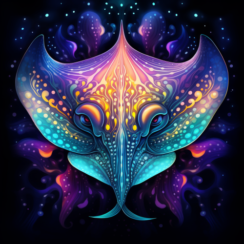 An adorable realistic stingray. Within it are highly detailed intricate fractal pattern, DMT, lsd, trippy, surrealism, neon colors, rainbow