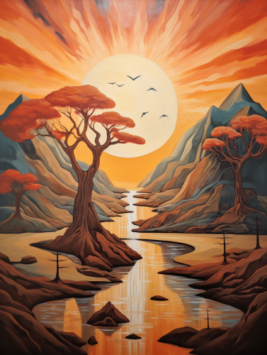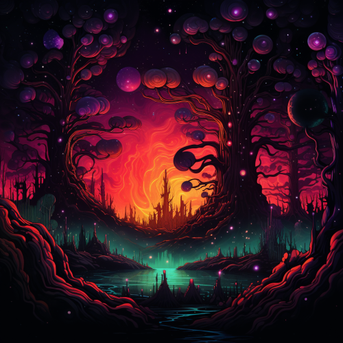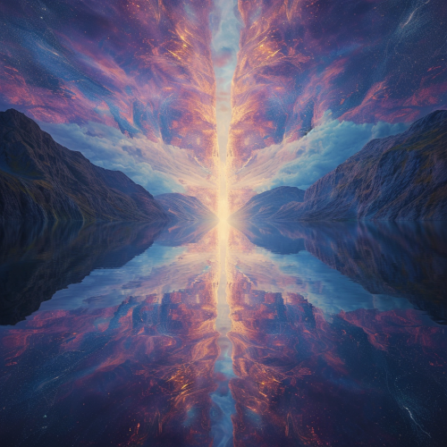 A lake that begins to transform into a DMT hallucinogenic galactic dimensions, interdimensional heaven's gate, cinematic lighting, breathtaking, studio lighting, illumination, glow --v 6.0