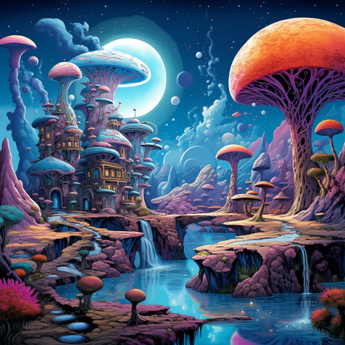 planet sized funktion subwoofer speaker playing low vibration on an alien planet, visible psychedelic sound waves, 8k, ultra realistic, octane render, notch render, technicolor --v 5.0 --s 750