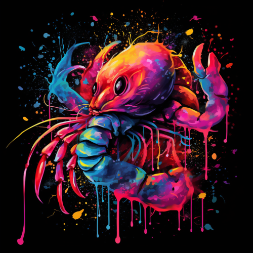 An Scorpio that is completely full of colors and looks very serious the colors are dripping and the background is black