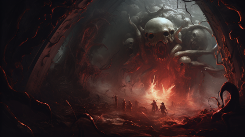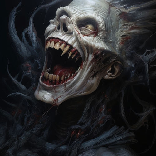 distorted laughter, dark fantasy aesthetic, high detail, hyperrealistic.