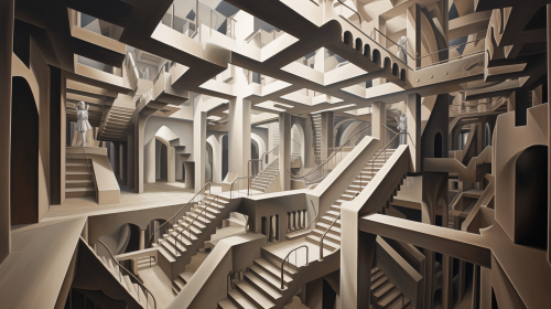 Escher like geometrical forms and perspective, shading style of Alex Ross --ar 16:9