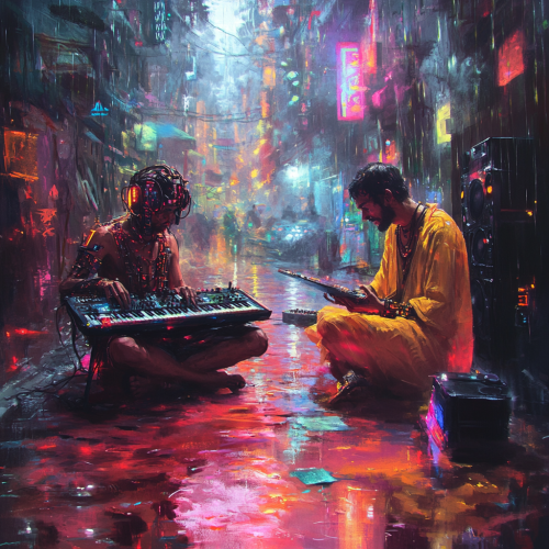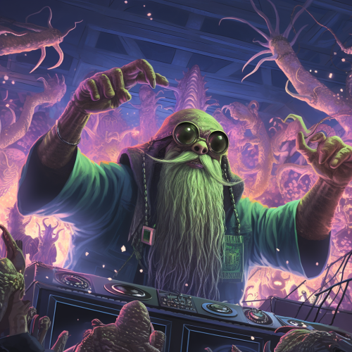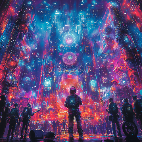 The world's ultimate AI unleashed at a mind-blowing SF rave, huge speakers, musicians, hackers in jumpsuits, psychedelic retro-futuristic art deco --q 2 --s 250