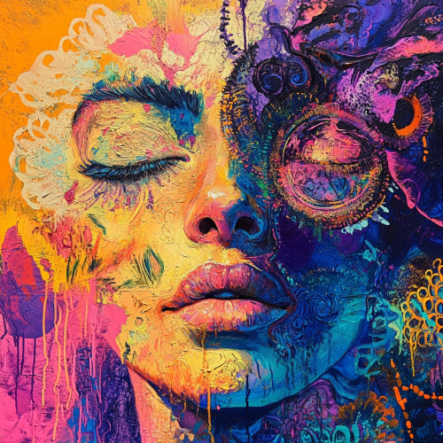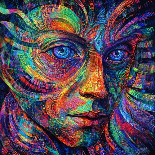 Medium: colorful painting, bold lines. Subject: acid trip. Scene: Psychedelic mandala. A dark vibrant Fibonacci spiral made of tessellating colorful translucent pixels forming beautiful face of higher consciousness, mesmerizing and fascinating, surreal, abstract, psychedelic, DMT, intense interplay of light and shadows, in the style of android jones, grzegorz domaradzki and alena aenami, 8k