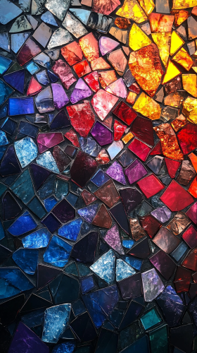 A beautiful mosaic, tiles, made out of different kinds of crystals, colorful, vibrant colors, abstract and smooth, gives a wow factor, --ar 9:16 --v 6.1