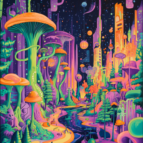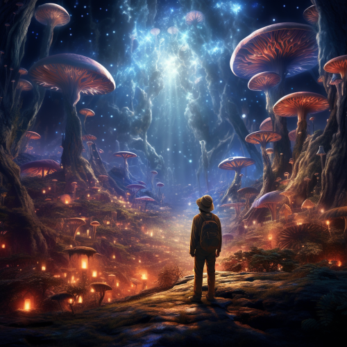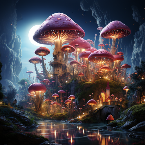 Psychedelic surreal magic mushroom fantasy world full of hope and dreams, photorealistic --s 750