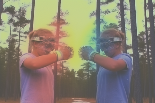 adult twins in a telepathic situation. they are connected by invisible waves. a very psychedelic moment. In the forest. Evening. Natural Colors. Natural light, a little bit of mist. full body. golden ratio. asymetric. Cinematic. --weird 3000 --v 5.2 --s 1000 --ar 3:2