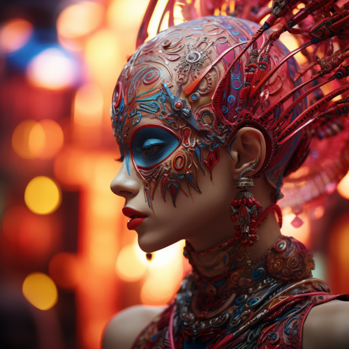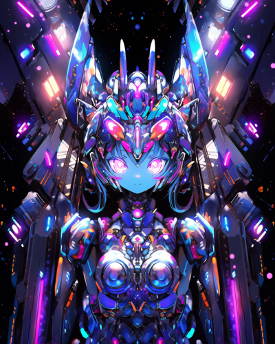 symmetrical, sacred geometry, medium-shot of psychedelic beautiful raver anime waifu geisha cyborg Mech Mecha in outer space, inside a space ship, alien, transcendental, rave fashion, dreamcore, dreamy, otherworldly, kawaii, cute, opalescent, chrome, holographic, 8k, ethereal, high-resolution, computer code, machine code, glitch, glitching, glitchy, glitchyness, symmetry, high-tech, technology, psytrance, edm, dubstep, dreamy, dreamcore, trippy, acid, acid washed, bleach dyed, tie-dye, hippie, bohemian, punk, industrial, futuristic, utopian, utopia, galactic, dark rogue, cyberpunk, pastel, neon, dmt visuals, trippy, acid, acid visuals, Ayahuasca visuals, small pixelation details --niji --ar 4:5