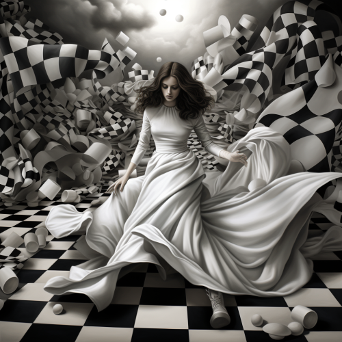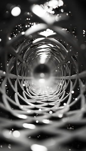 Christmas. Black and white. Abstract psychedelic. Stylish. High - end. Important. Mysterious. Shot with a Pentax. K - 3 III Monochrome. Extreme low angle shot. Shooting straight up. --ar 4:7 --q 0.5 --s 750