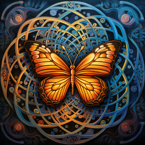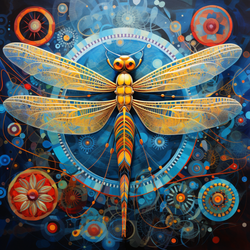painting of dragonfly. Fibonacci swirls, symbols psychedelic