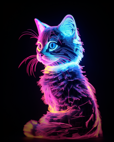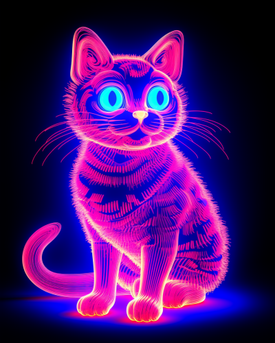 a 1980s glowing 3d rendering of the chesire cat from alice in wonderland in the style of vaporwave. Neon colors. --ar 8:10