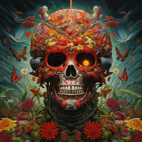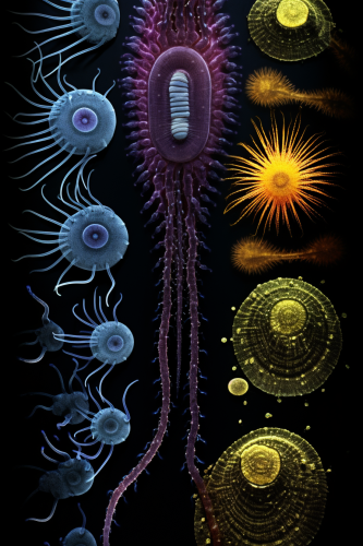 Dark and Gloomy Electron Colors microscope view by Frederic Remington, Salvador Dali, Stanley Kubrick and David Lynch. Microorganism galaxies, Kraken, Critters, Bacteria, Millipede, Hydnellum peckii. Reaction diffusion patterns, Larvae, tentacles, axons, microscopic organism, cell structure, plasma membrane, nerve fibers, ferrofluid patterns, fungi, macrophage, microscopic landscape, colorized line drawing, organ of corti, connective tissue, nerve cells, circuit board, glomerulus, vertebrae, podocytes. Mitochondria. Precious stones. Tropical flowers. Psychedelics Atoms. Organic. Neurons. Cytoplasm. Organelles in Flowers. Moss. Excalibur. Golgi Apparatus. Meditation. . Fantasia. Psychedelics Lianas. Lime. Molecules. Calm and serenity. Jesus Hidden. Incense fumes. Fantasia Style. Sarcophyton. Anthurus archeri. Corallium rubrum. Antipatharia. Acropora. Caryophyllidae Euphyllia. Epic Masterpiece and carved details. Quality. Huge scenery, insanely detailed and intricate details. 1988. Cowboy Bebop. japanese aesthetics, ray tracing light, ray tracing lines, ray tracing textures, photographed by Jan Saudek for i - D Magazine Ultra realist depth of field. Hypermaximalist illustration. 4600dpi --ar 2:3
