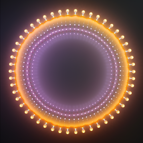 a glowing graphic circle of yellow light in the middle is a thin array of light lavendar green lilac pastel colors then another glowing grphic circle of yellow light of oranges