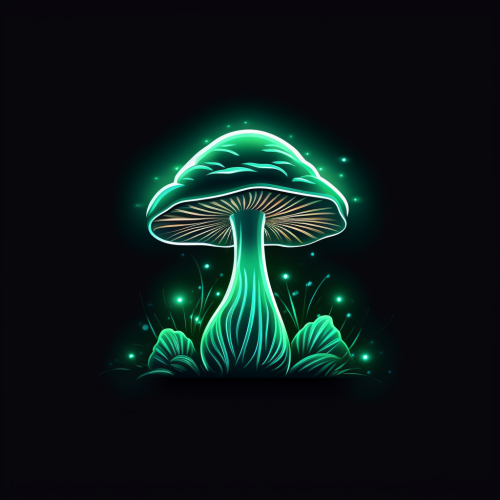2D logo design, vector, made of triangles, simple, psylo mushroom, glowing