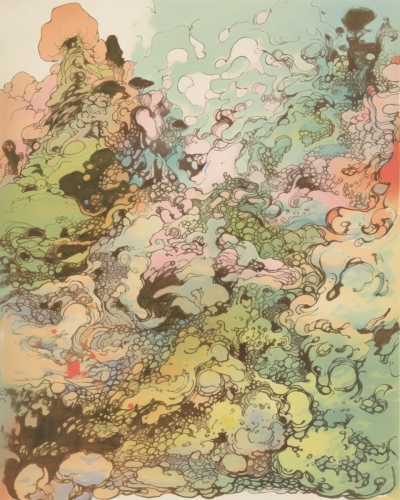 fantasy lithograph, 1950s fantasy comic, Dungeons and Dragons, psychedelic necromancer, surrealism, --ar 9:16 --s 250 --v 6.0