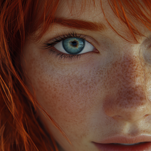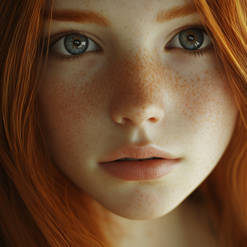 Hyper-realistic, high-resolution portrait of a young red-haired girl with minimal freckles, looking directly into the camera with heterochromia – one blue eye and one brown eye. Full-face close-up, capturing the entire face in clear detail, with vibrant red hair framing her face naturally. Soft, natural lighting enhances her unique eye colors and gentle expression. She’s wearing a simple top, realistic textures, ultra-detailed, cinematic quality.